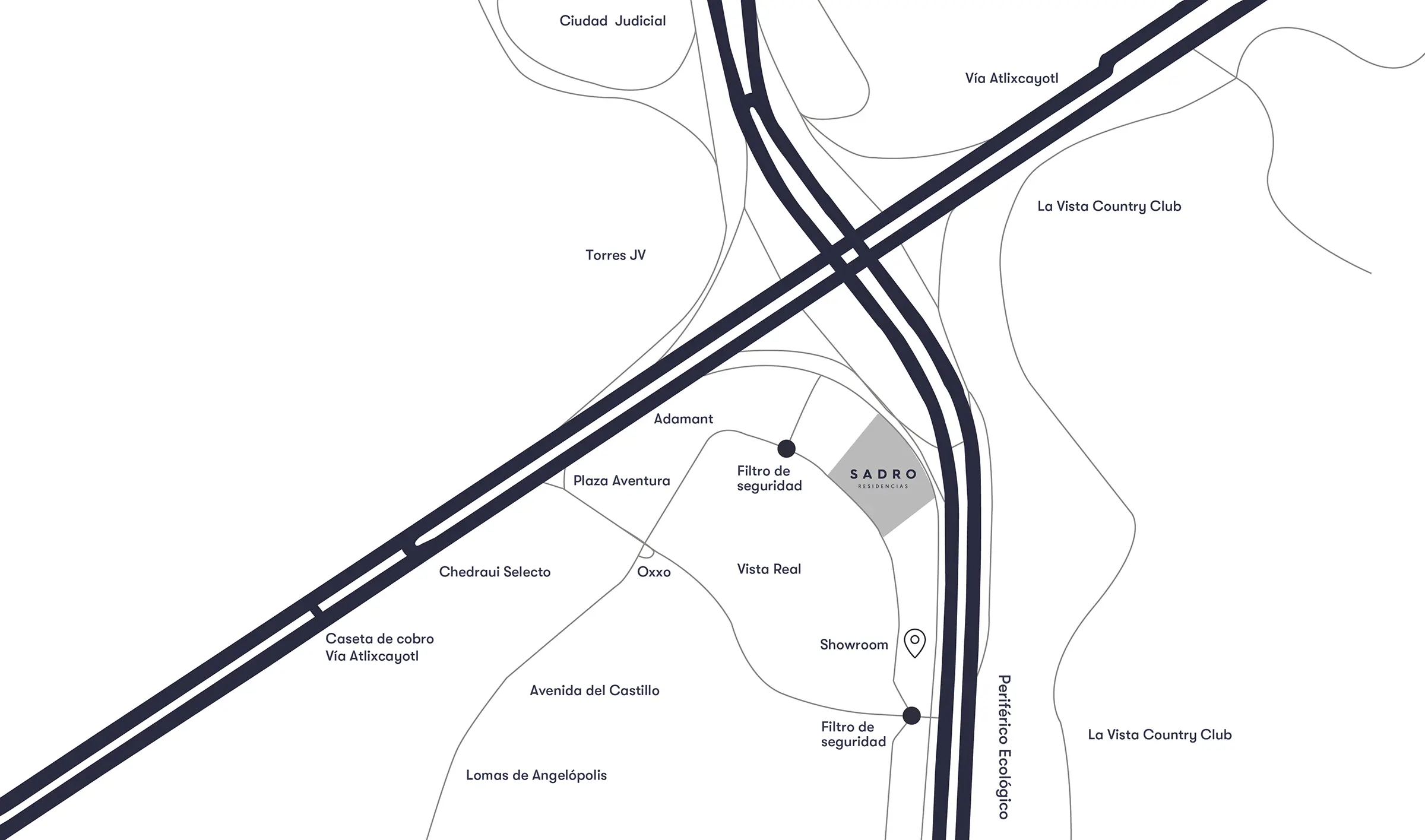 Sadro se encuentra en la intersección de dos de las principales avenidas de Puebla: Periférico Ecológico y Blvd. Atlixcáyotl. Nuestra ubicación privilegiada te permitirá llegar a las salidas hacia todos los estados vecinos sin pasar por un solo semáforo.