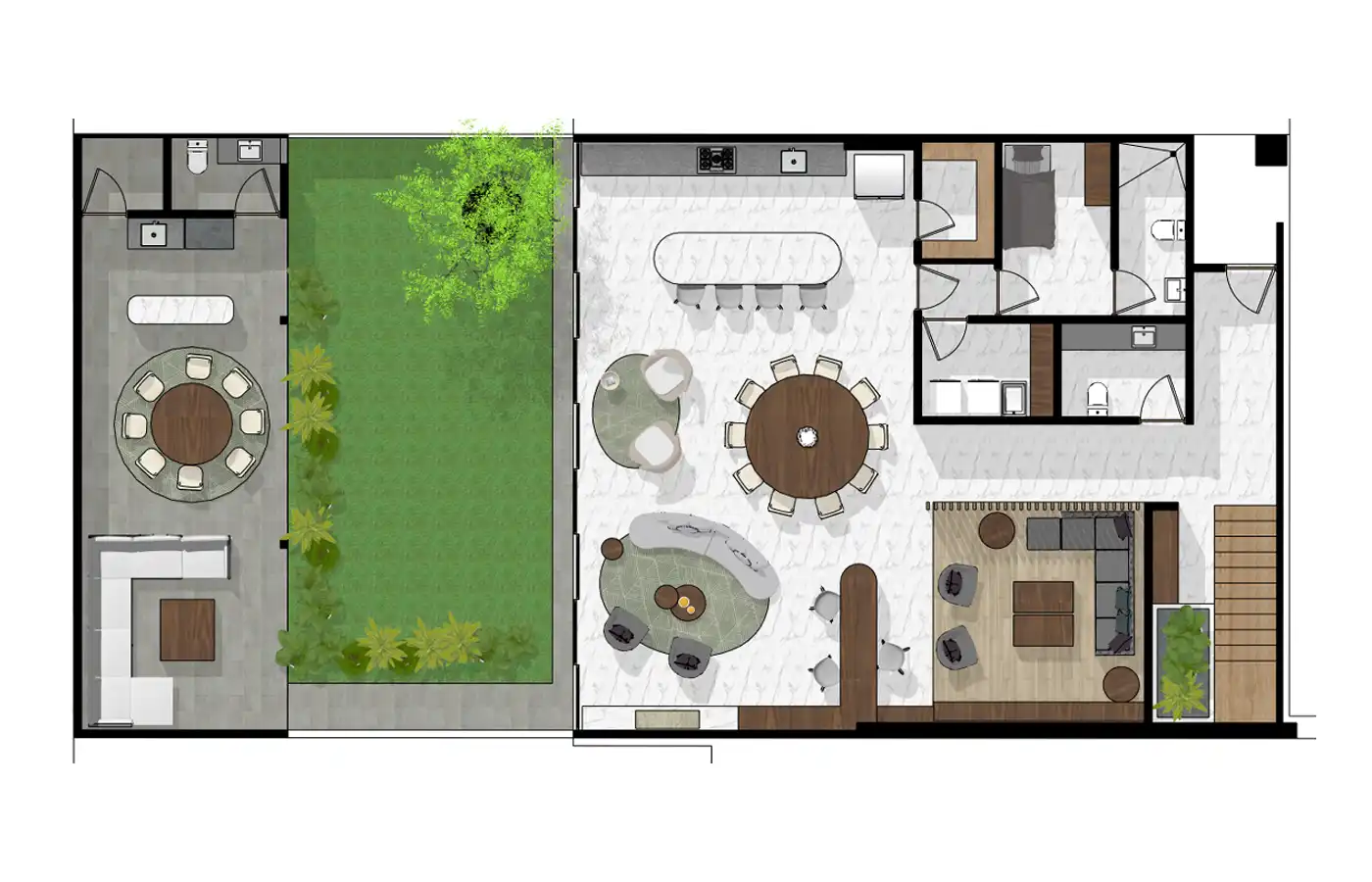 En la planta baja de nuestras torres nacen espacios únicos: residencias de doble nivel, con jardín privado, terrazas amplias y acceso directo a todas las amenidades de SADRO.